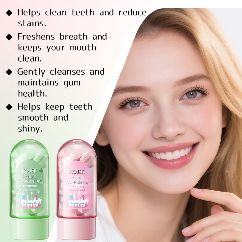 Tablettes de dentifrice solides probiotiques de luxe OEM portables pour les voyages, blanchiment des dents, haleine fraîche, dents sensibles, menthe