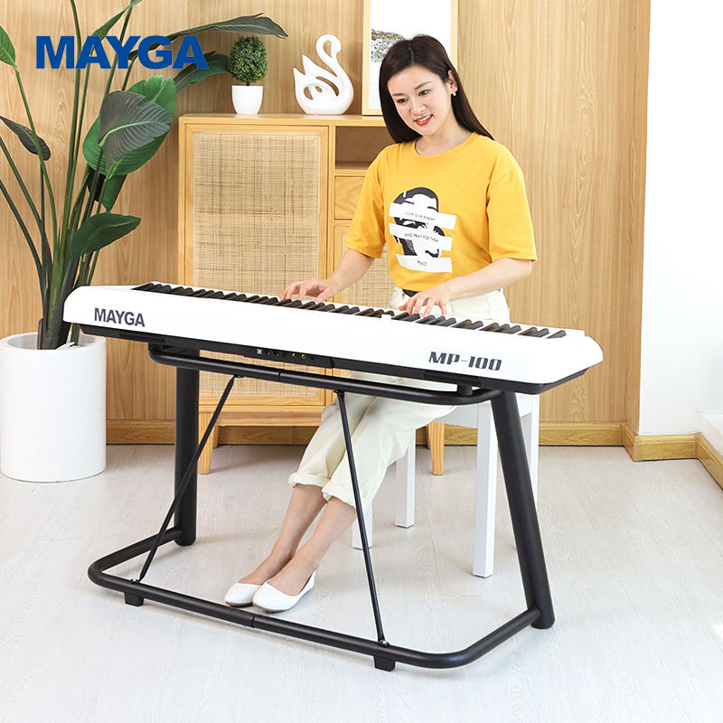 OEM MAYGA MP-100 Modèle 88 touches, 200 voix, 100 rythmes, 60 chansons Deomo, piano électrique en plastique avec 4 haut-parleurs et support en U
