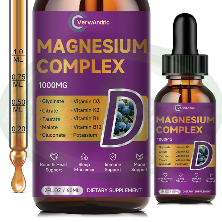 Compléments alimentaires liquides de magnésium complexe OEM, glycinate citrate 60 ml, saveur personnalisée pour soutenir l'énergie musculaire, la santé des os et du cœur