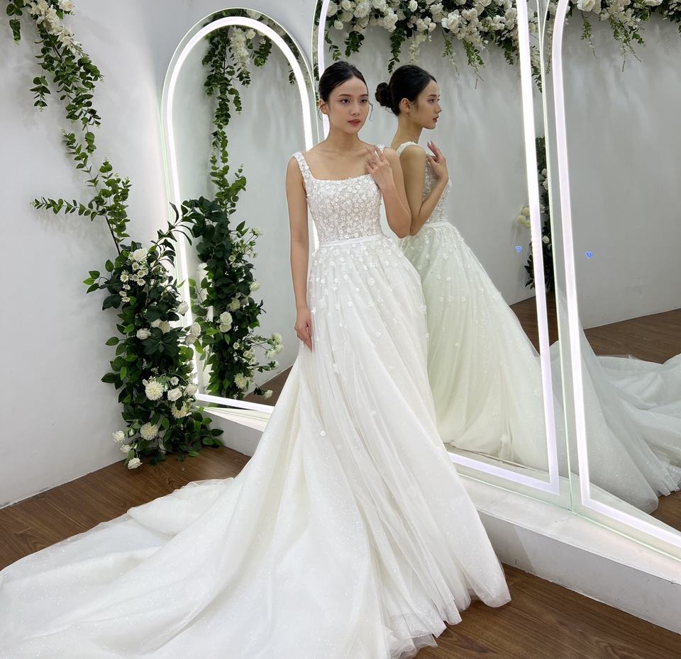 Fabricant OEM, conception personnalisée, robe de mariée de haute qualité, élégante grande taille TNBPno011, fleur élégante en dentelle, longue queue, nœud fait main