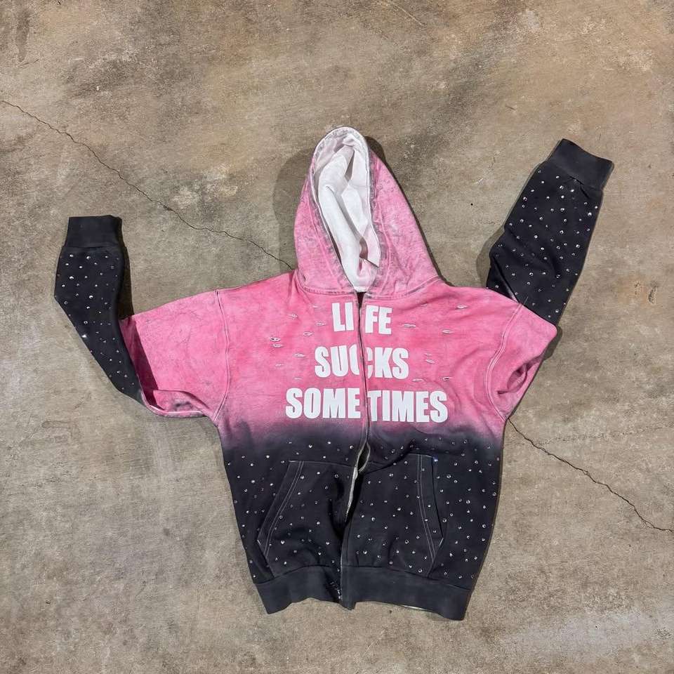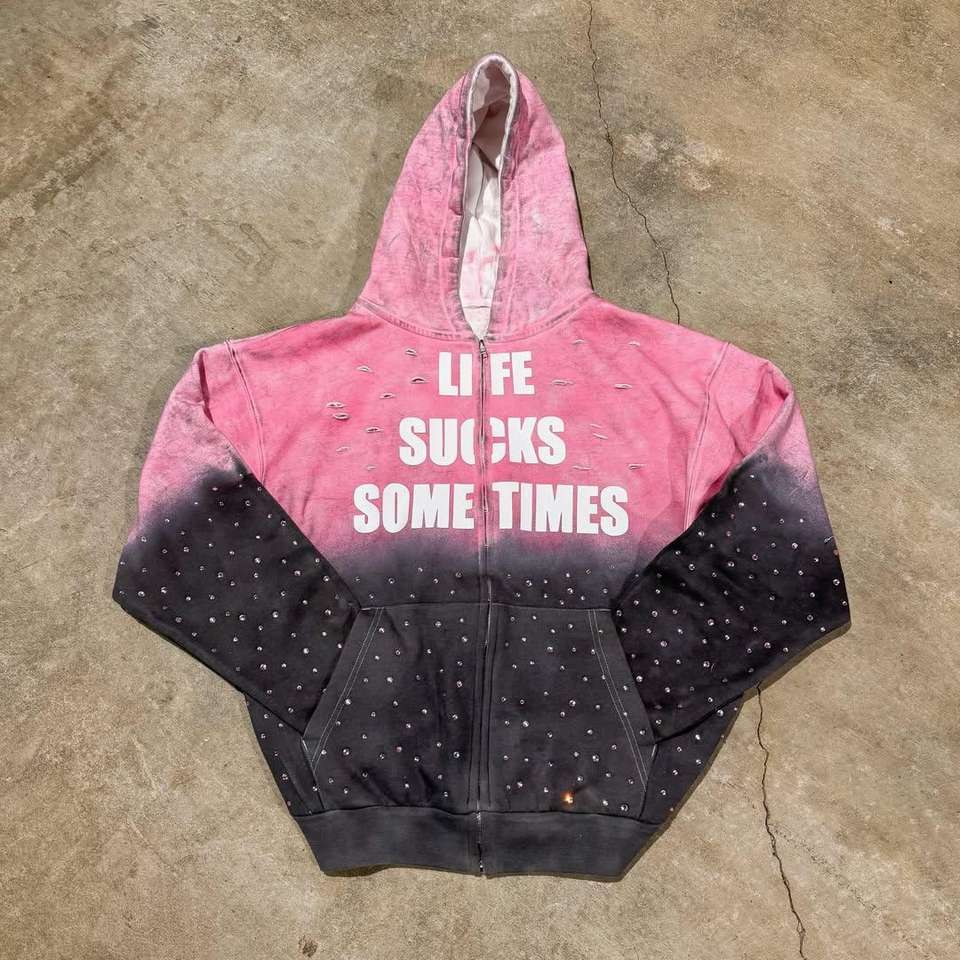 Fabricant OEM, sweat-shirt personnalisé à double couleur avec fermeture éclair, logo imprimé, impression d'écran personnalisée, logo, sweat-shirt surdimensionné entièrement recouvert de strass