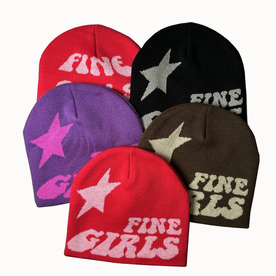 Fabricant OEM Impression complète sans manchette Bonnet en tricot jacquard Logo