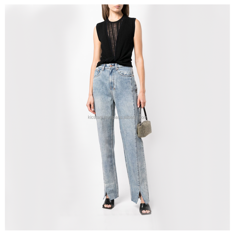 Fabricant OEM – Jean en denim décontracté taille haute longueur cheville pour femme, coupe droite, écologique, respirant, confortable, qualité supérieure