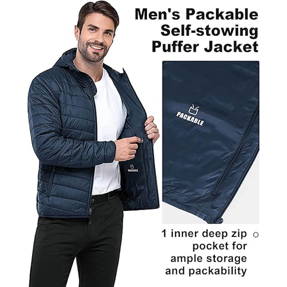 OEM Manufacturer Mens Lightweight Hooded Puffer Jackets Warm Water Resistant Puffy Coat Custom Screen Printing Embroidery