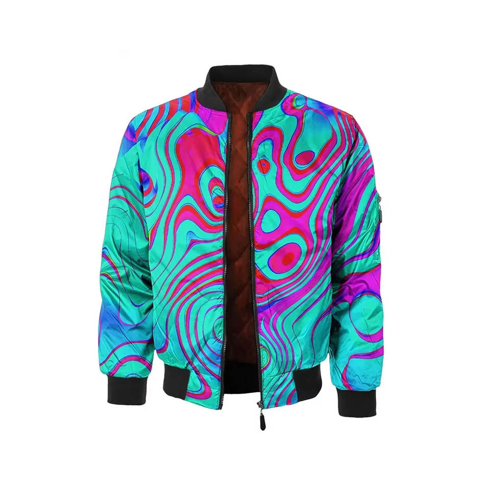Blouson Bomber Homme Personnalisé OEM Hiver Col Montant Imprimé par Sublimation Entièrement Zippé Imperméable Écologique