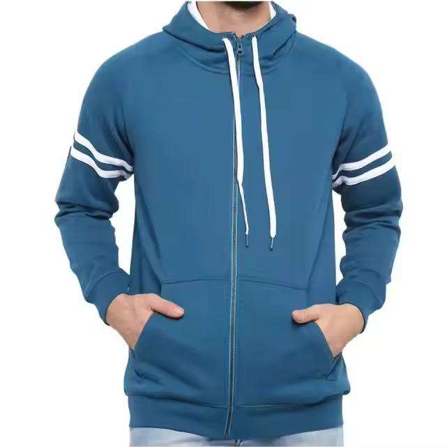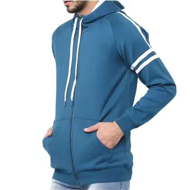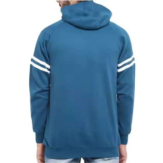 Sweat à capuche personnalisé pour homme, style streetwear, 100% coton, poids lourd, couleur bleu uni, pour adultes, hiver.