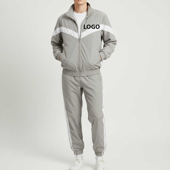 Survêtements personnalisés pour hommes avec logo OEM, coupe-vent bicolore, ensemble 2 pièces pour la gym, joggers unisexes à fermeture éclair, streetwear imprimé, survêtements mi-lourds