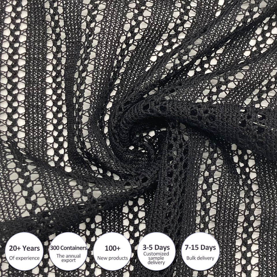 OEM Men's Knitted Jacquard Pattern Black Lace 100% Polyester Short Sleeves Crochet Shirts Fabric for Clothing