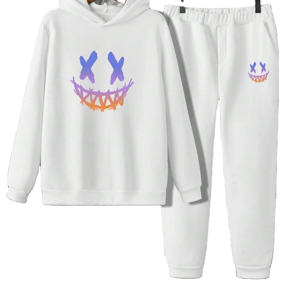 Ensemble de survêtement décontracté 2 pièces pour homme, motif dessin animé, sweat à capuche et pantalon, 100 % coton, le plus vendu