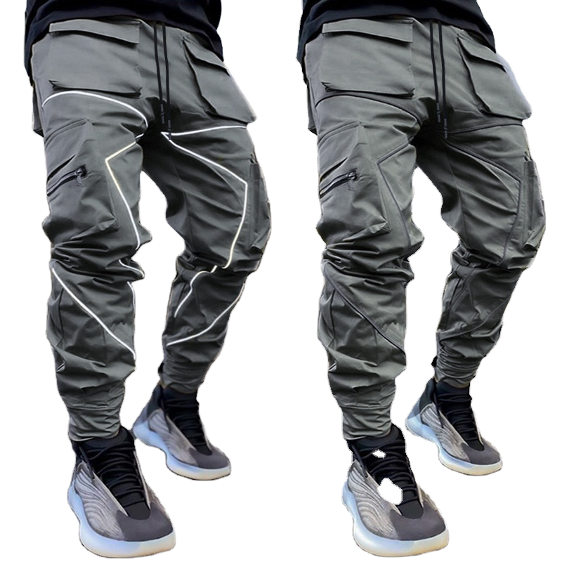 Pantalon cargo jogger technique multi-poches réfléchissant pour homme OEM, style streetwear hip-hop tactique, vente en gros personnalisée