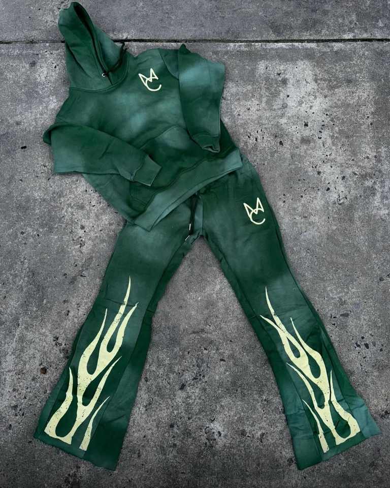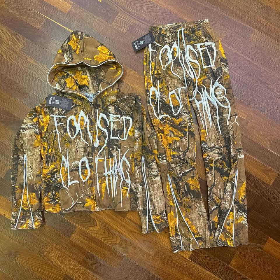 Survêtement à strass OEM pour hommes, pantalon de survêtement évasé à double taille avec logo entièrement imprimé, ensemble de sweat à capuche, survêtement rayé pour l'automne