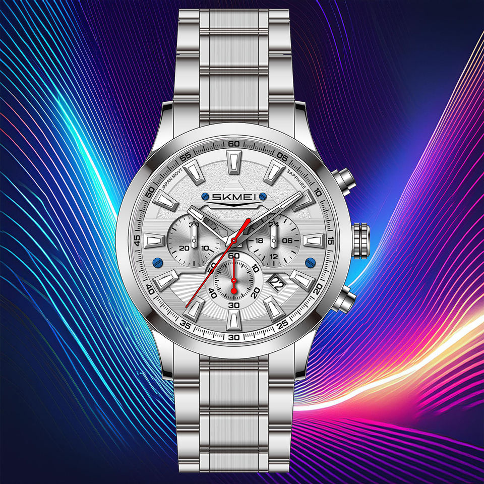 Montre à quartz élégante en acier inoxydable pour hommes OEM 43mm conception à trois aiguilles étanche de luxe business logo personnalisé boucle tendance