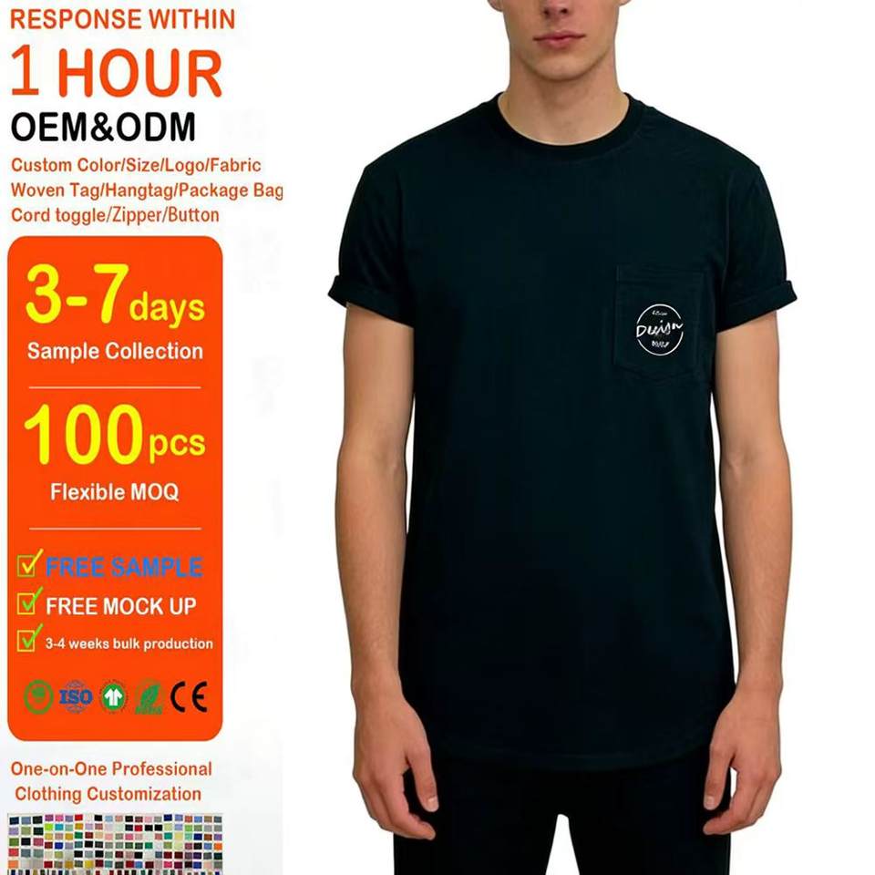 Men's High Quality Cotton Rolled Cuff Pocket T-Shirt 180 Grams Short Sleeve Curved Hem Custom Embroidery Pocket Logo Men's Tee