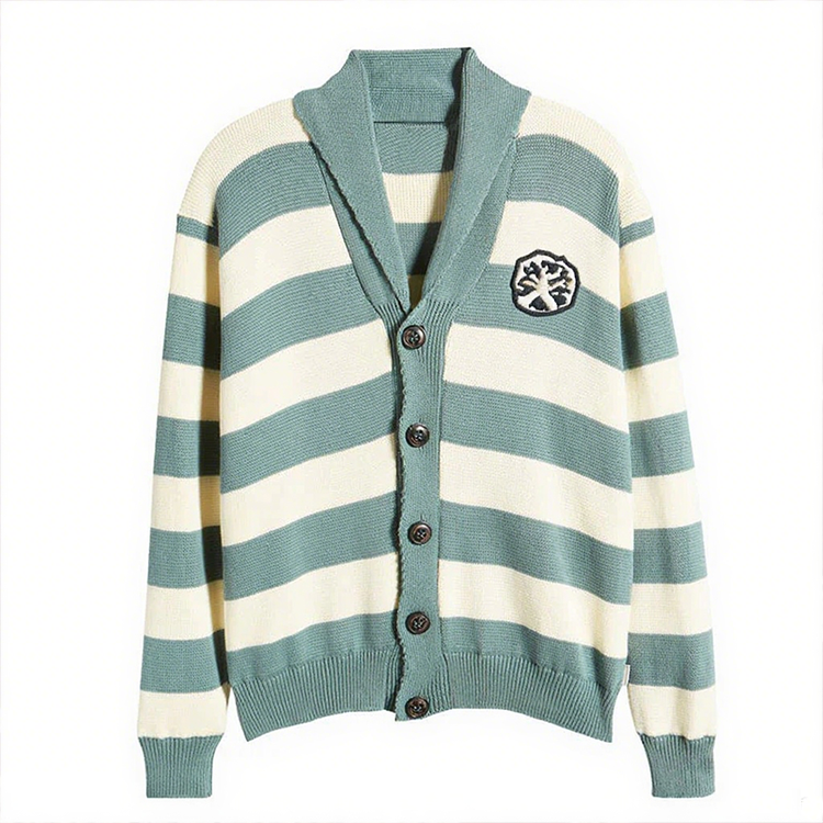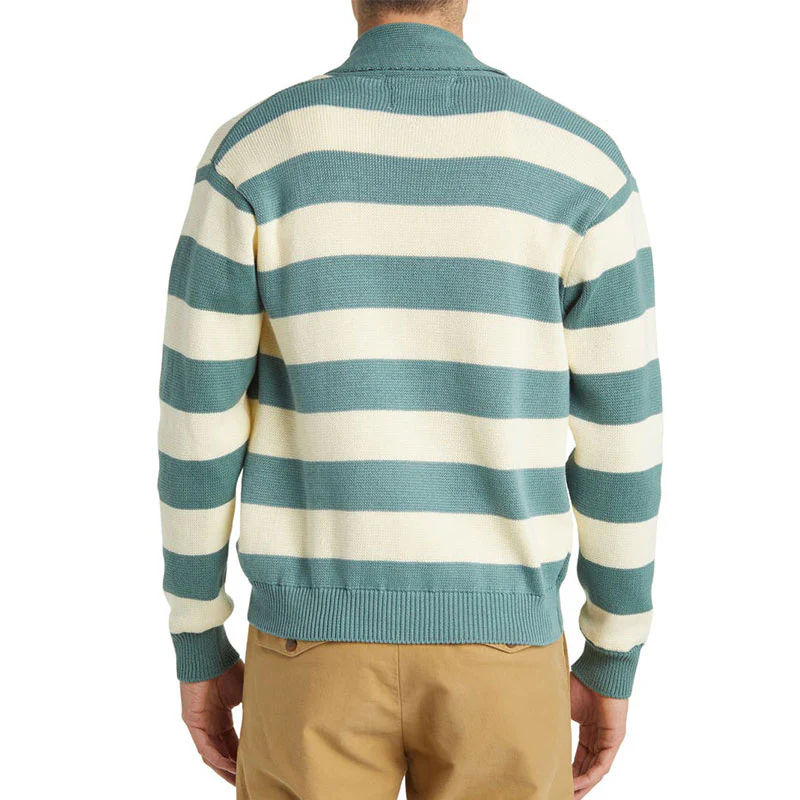 Pull pour hommes OEM Logo personnalisé Col en V Col marin Cardigan tricoté à manches longues Motif à rayures Broderie Vêtements à la mode