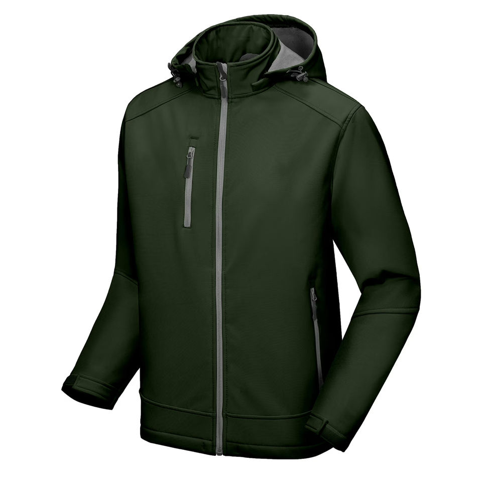 Veste d'hiver décontractée softshell OEM pour hommes, col à capuche coupe ajustée, manchette réglable, couche intérieure, veste softshell respirante