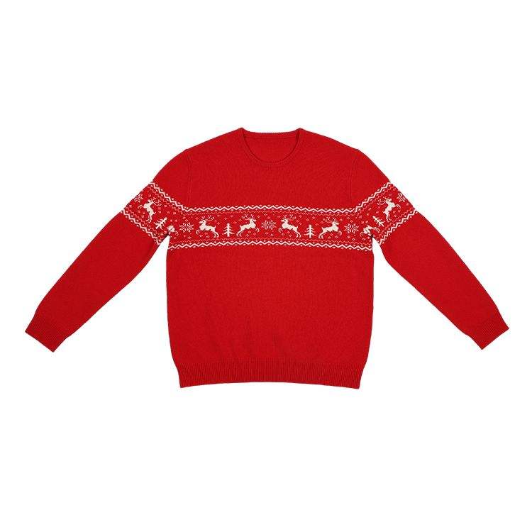 Pull-over en coton de coupe régulière pour hommes OEM logo personnalisé pull moche manches longues col rond fin 100% coton pour Noël