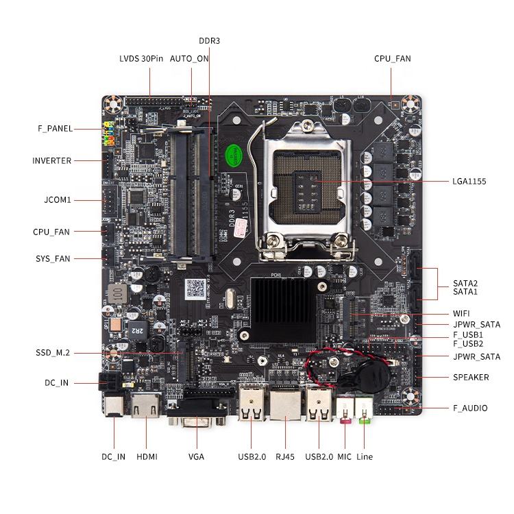 Carte mère OEM Mini ITX H61 pour ordinateur, 128 Go de RAM DDR3, 2e/3e génération LGA1155, PC de bureau tout-en-un personnalisé pour processeur I5 Max