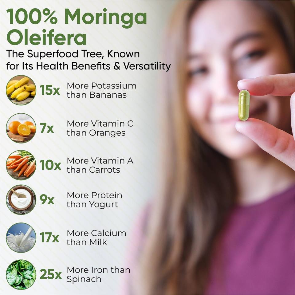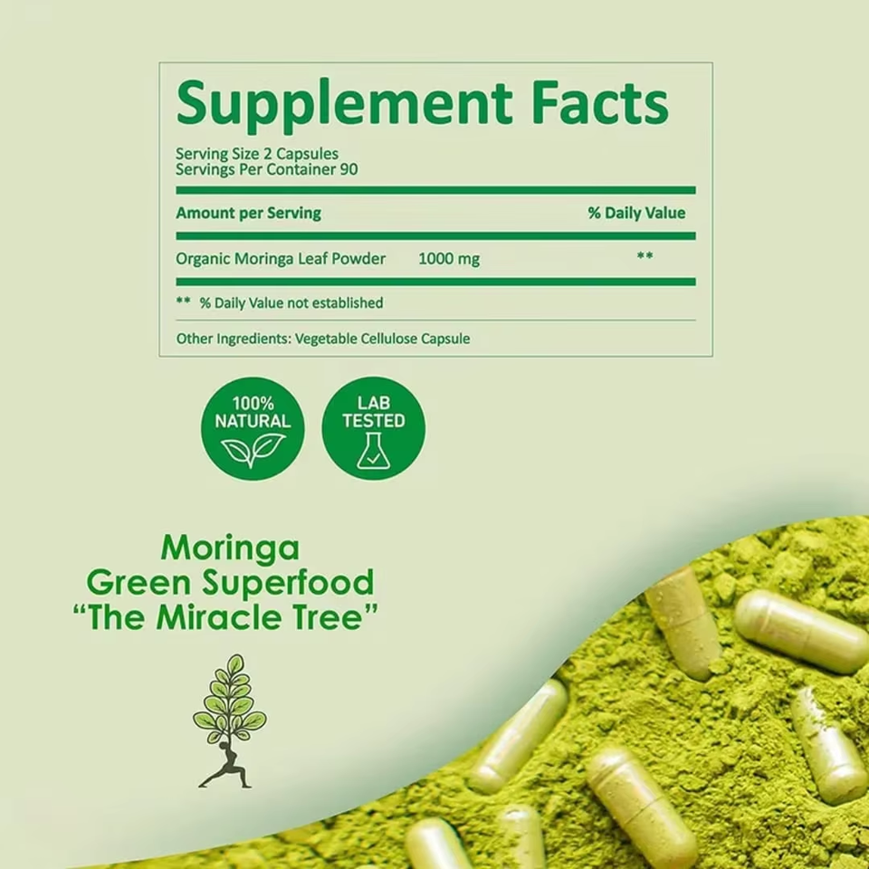Capsules d'extrait de feuilles de Moringa OEM 500 mg Complément alimentaire naturel à base de plantes pour l'énergie et l'immunité Moringa 60 capsules pour hommes et femmes