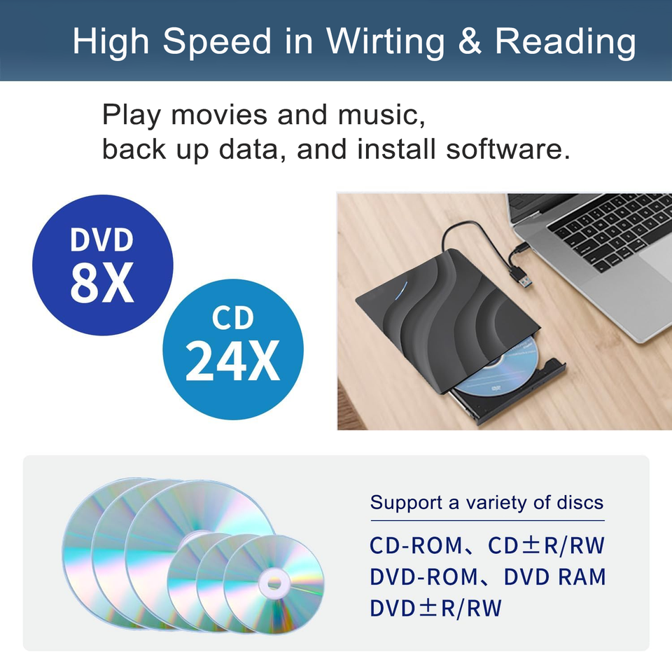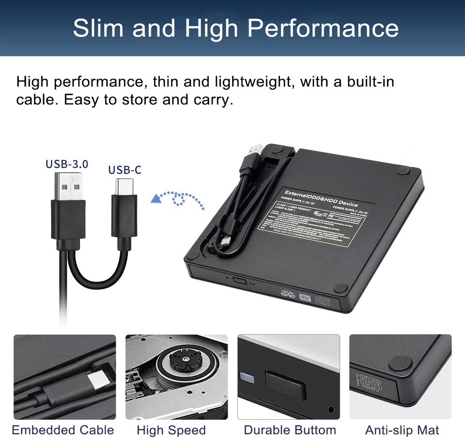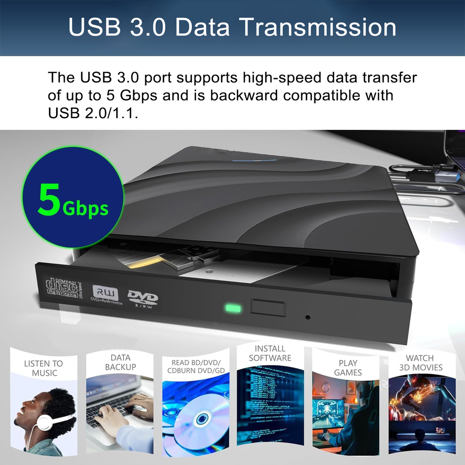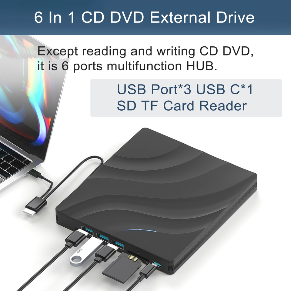 Lecteur CD DVD multifonction externe OEM 6 en 1 USB 3.0 USB C lecteur CD DVD mince léger lecteur DVD portable graveur