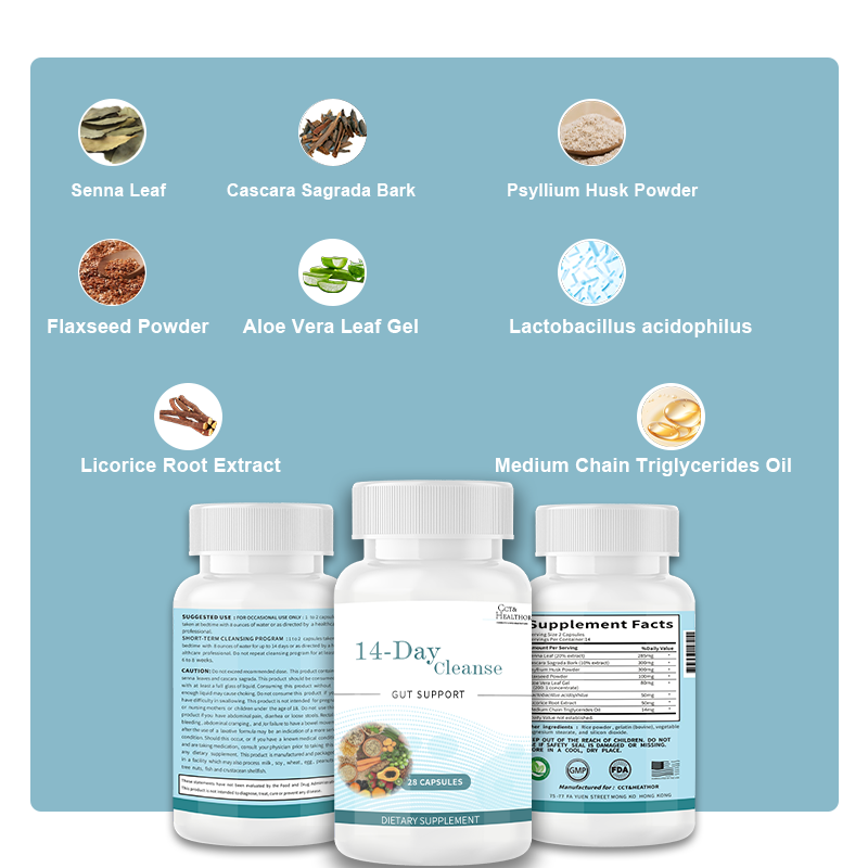 Feuille de séné, Coque de psyllium, Écorce de Cascara Sagrada, Poudre de graines de lin, Gel de feuille d'Aloe Vera, Extrait de racine de réglisseIngrédient principal