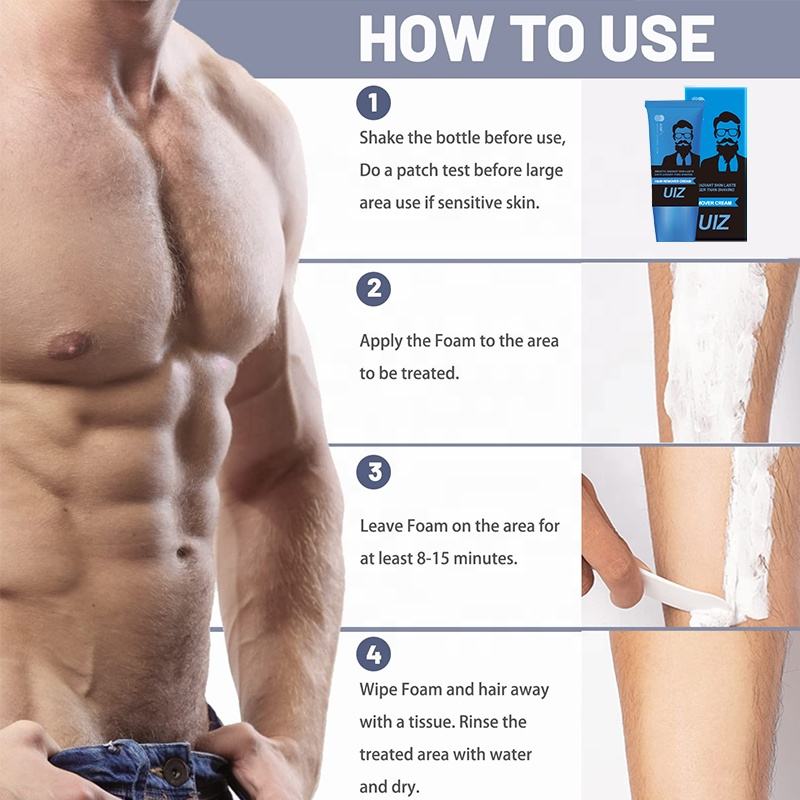 Crème légère et rapide efficace pour hommes OEM, lotion pour épiler tout le corps, crème d'épilation permanente et indolore pour hommes