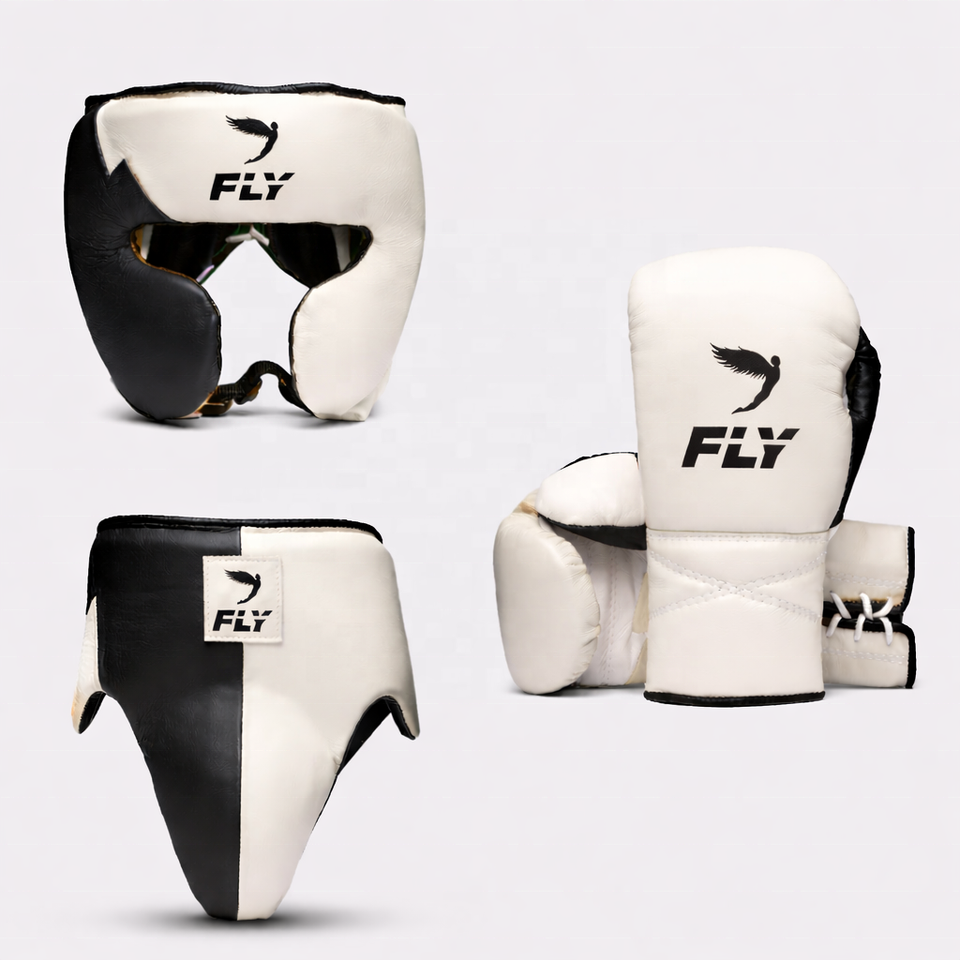 Nouveau modèle OEM personnalisé FLY Rouge Blanc Kit de boxe et d'entraînement en cuir véritable avec gants à sangle de poignet réglable – Vente en gros
