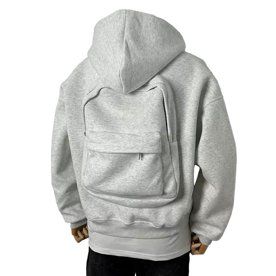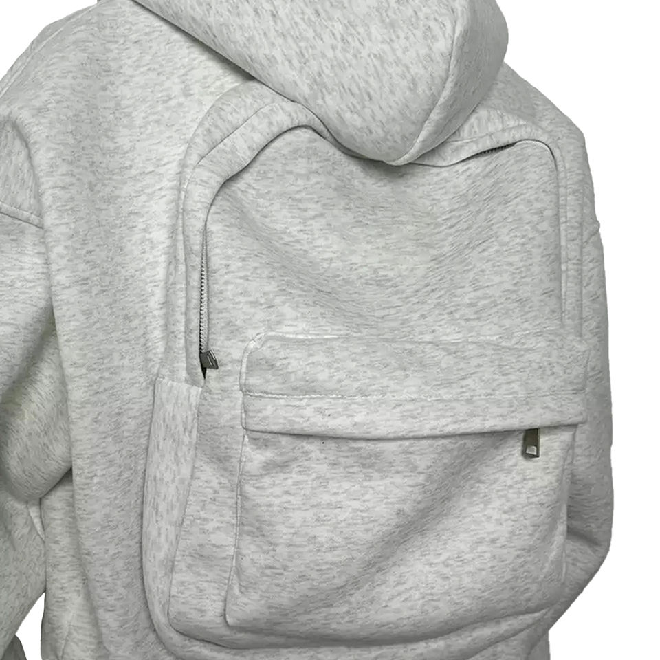 Nouveau design OEM, sac à dos avec fermeture éclair, pulls à capuche, épaules tombantes, logo personnalisé, vêtements de ville lourds, sweats à capuche zippés en coton
