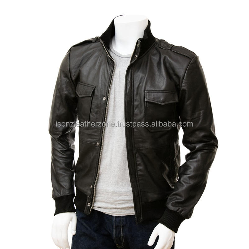 Blouson Bomber Homme Personnalisé OEM en Cuir Véritable Respirant de Haute Qualité avec Col Montant et Doublure Chaude pour l'Hiver en Extérieur