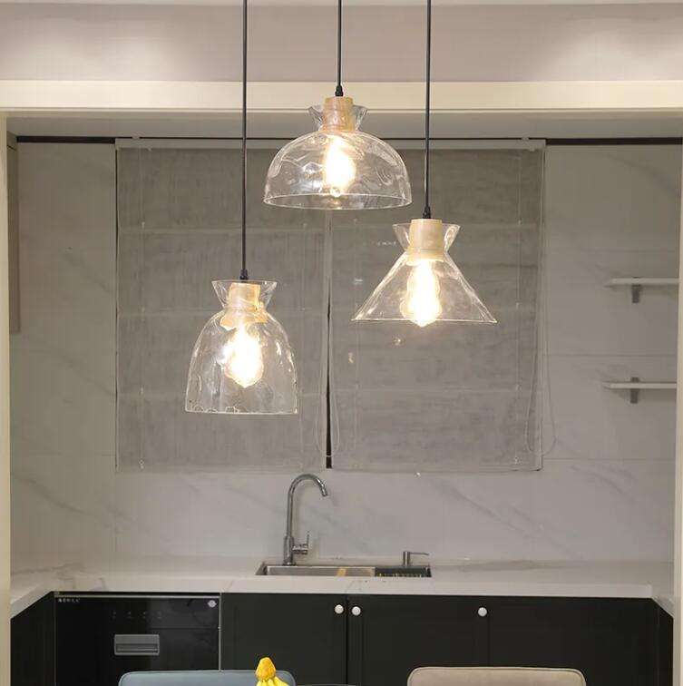 Lustre LED en verre à vagues d'eau nordiques OEM Lustre de bar à tête unique de chevet de chambre à coucher simple