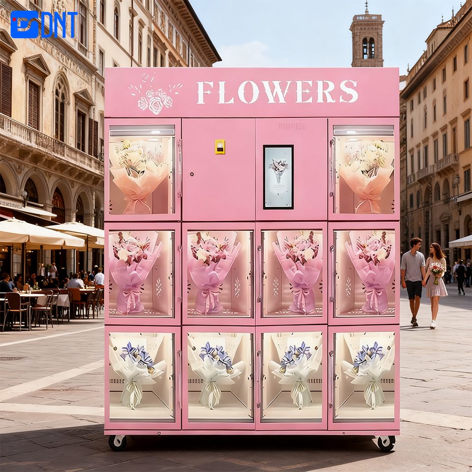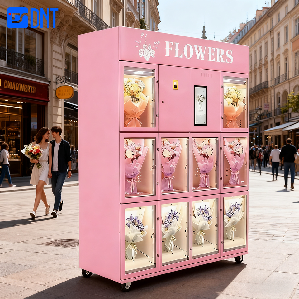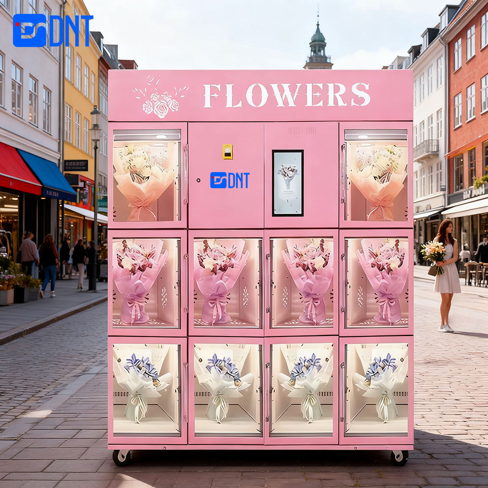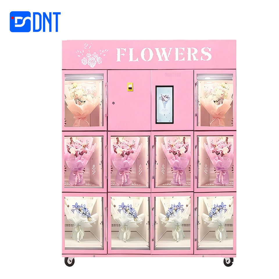 Distributeur automatique de fleurs intelligent OEM/ODM avec 10 grands compartiments, refroidissement par compresseur, écran tactile 15,6 pouces, SDK, service 24h/24