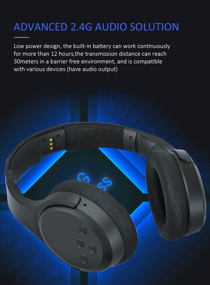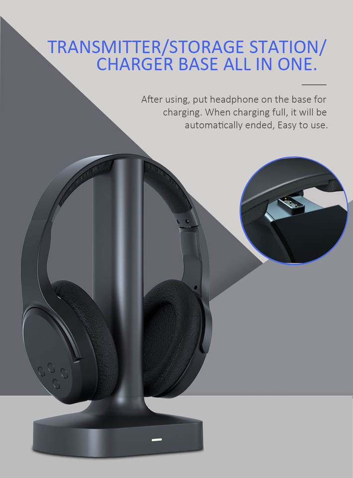 Casque TV sans fil 2,4 G OEM/ODM, casque supra-auriculaire pour TV avec base de charge
