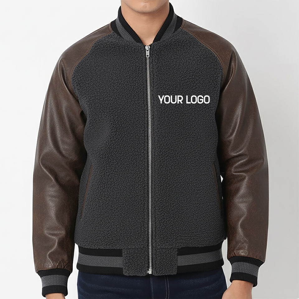 Blouson universitaire à capuche imperméable et coupe-vent en toile 100 % laine bicolore OEM/ODM pour homme, streetwear confortable avec logo frontal