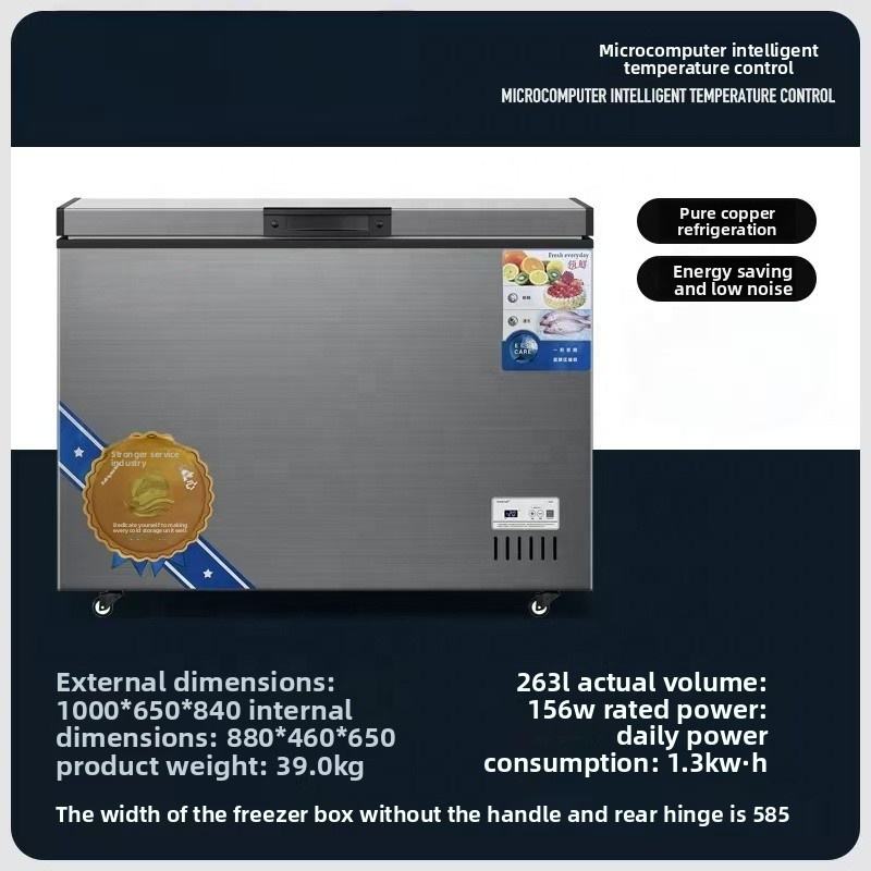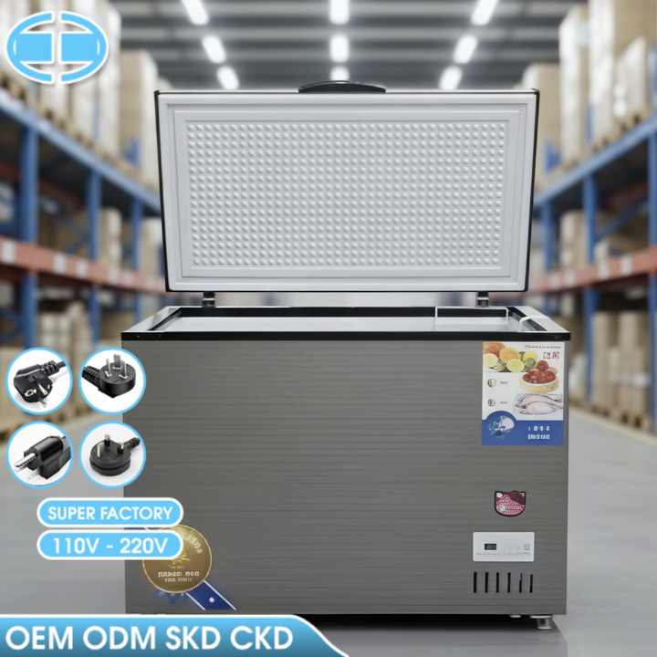 Congélateur horizontal à porte unique OEM/ODM 263L, grande capacité, pour la maison et les dortoirs, congélation rapide, congélateurs coffres profonds