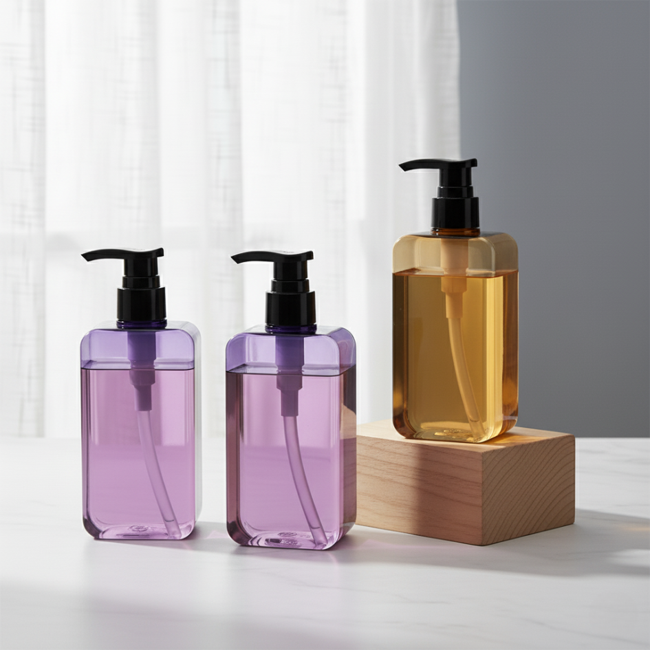 Bouteille en plastique PET multicolore transparente OEM ODM 350ml pour emballage cosmétique prix de gros bon marché pour shampooing, revitalisant
