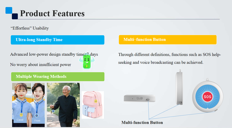 Function:SOS/Family call, Positioning, Tracking history, White list, SMS, Alarm