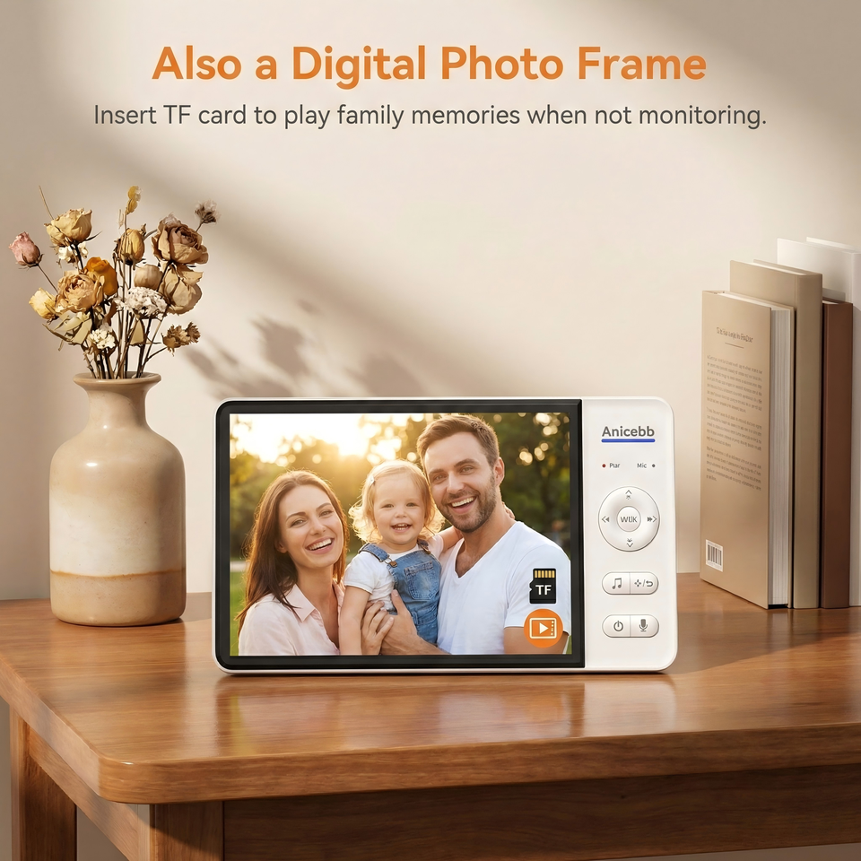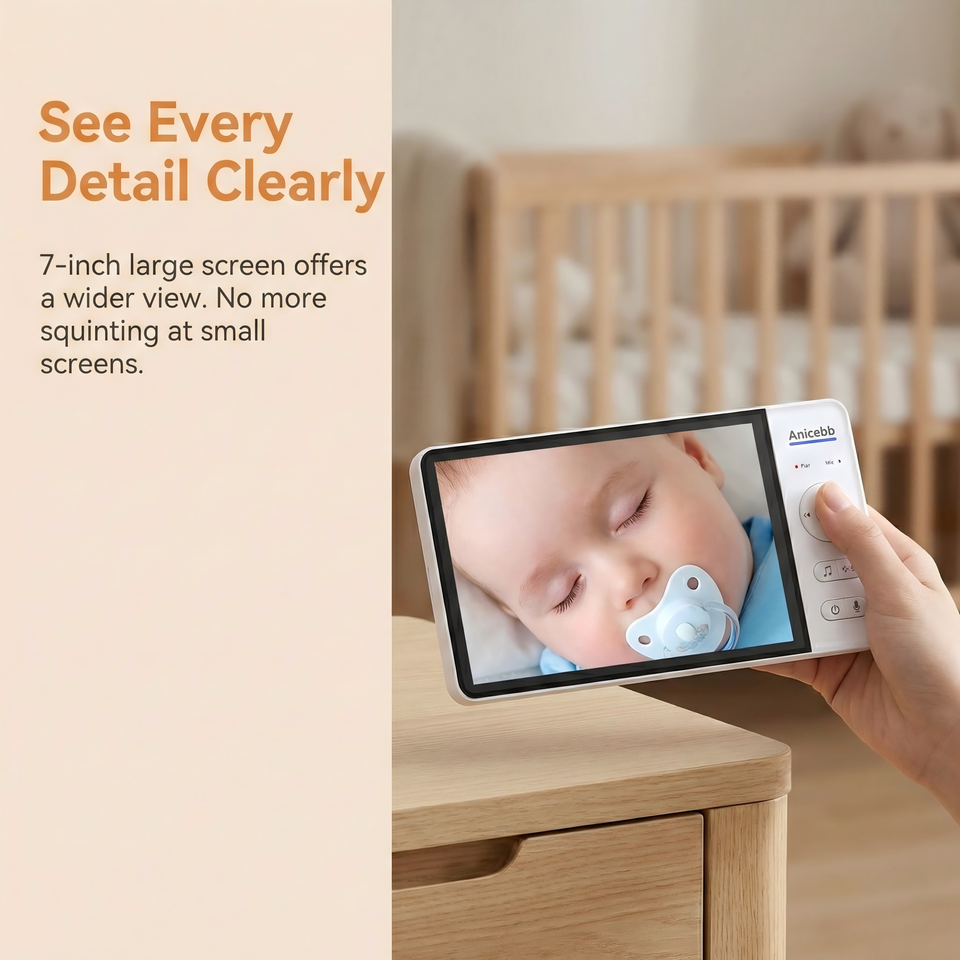 Moniteur Bébé Sans Fil 7 Pouces OEM ODM, Caméra 720P Anti-Hack, Sans WiFi Requis, Longue Portée, Batterie 5000mAh, Mode VOX, Alarme Température