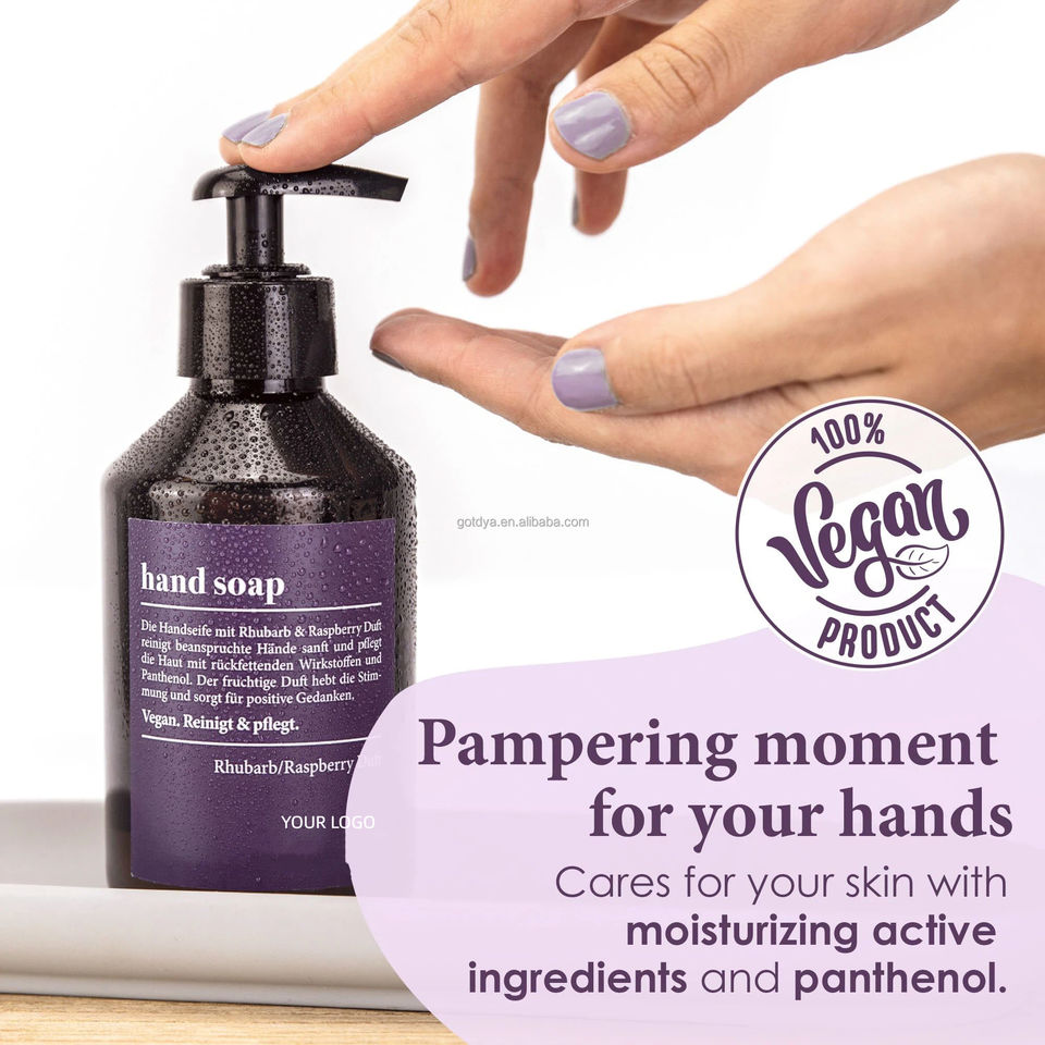 Savon Liquide Hydratant Naturel OEM ODM pour les Mains, Rhubarbe Framboise, Nettoyant Doux et Lissant, Marque Privée, Savon Lavant pour les Mains