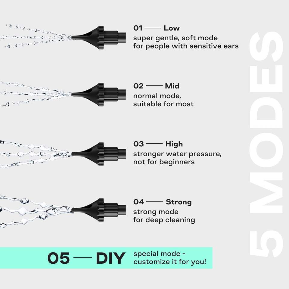 Nettoyeur d'oreilles électrique automatique OEM ODM, flexible, à impulsions, réglage multi-mode, étanche, appareil d'irrigation auriculaire