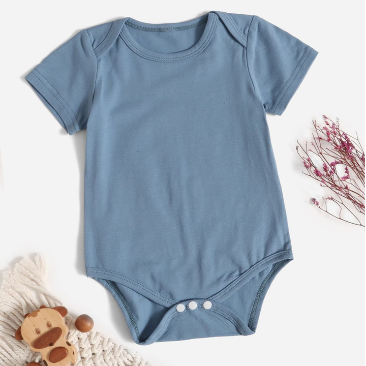 Vêtements pour bébés en gros OEM ODM : Pyjama-gilet nouveau-né mignon en bambou, barboteuse unie à manches courtes avec boutons-pression, 100 % coton biologique