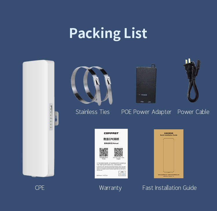 Pont WiFi numérique COMFAST 2,4 GHz longue portée 1 km pour caméra de vidéosurveillance, antenne extérieure 300 Mbps (OEM/ODM)