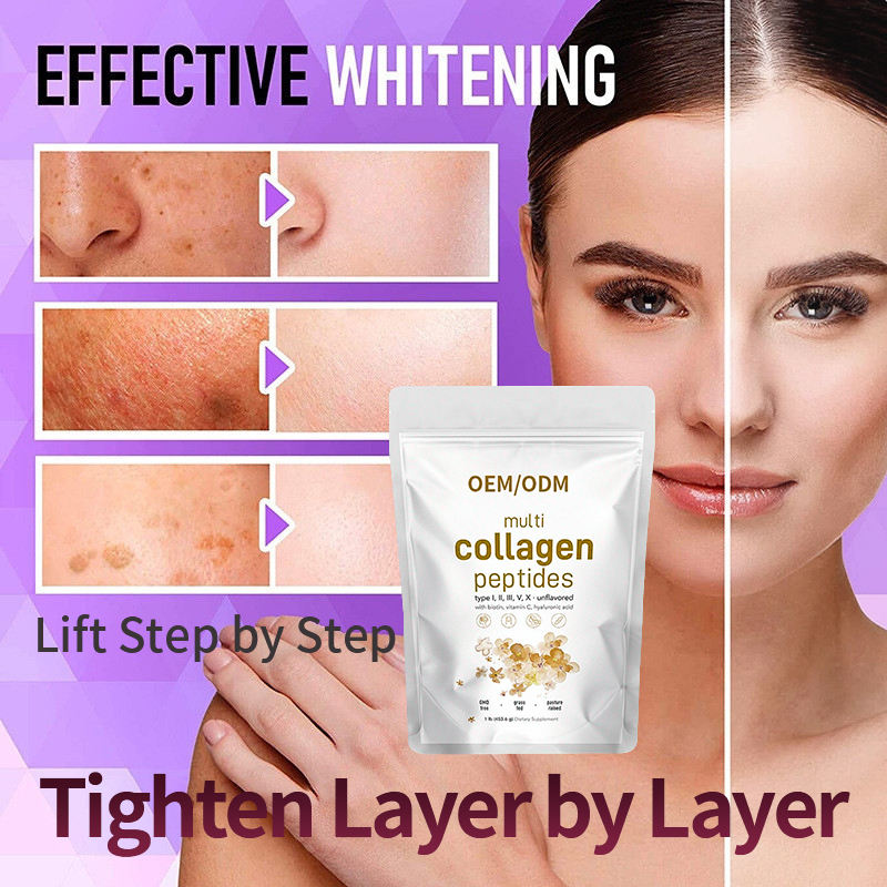 Collagène en poudre OEM ODM, antioxydant naturel, éclaircissant pour la peau, favorisant la croissance des cheveux, collagène marin, vitamine C, biotine, végétalien