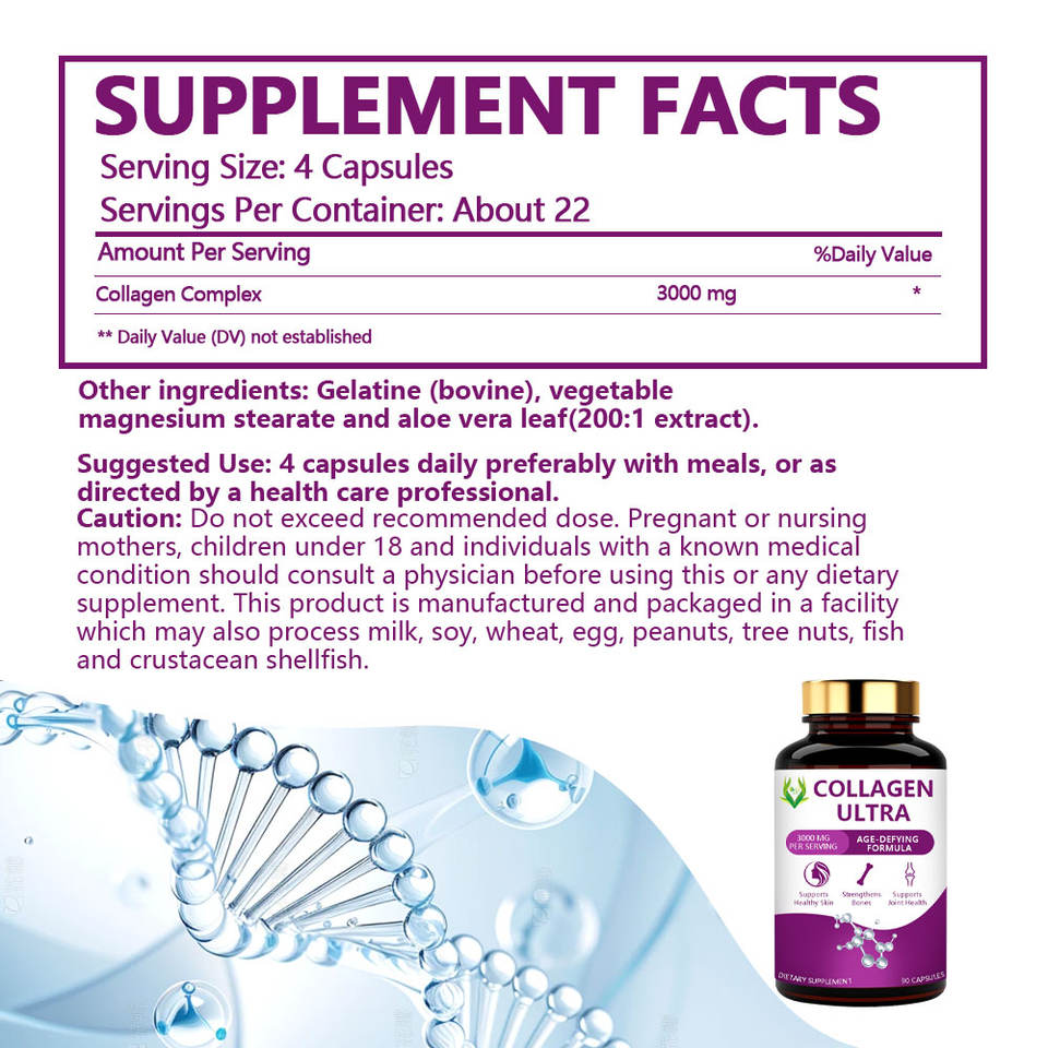 OEM ODM Capsules de collagène Ultra formule défiant l'âge pour l'élasticité de la peau, soutien des articulations osseuses, collagène haute puissance