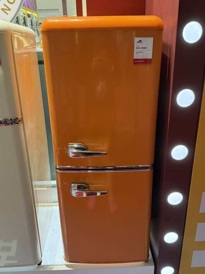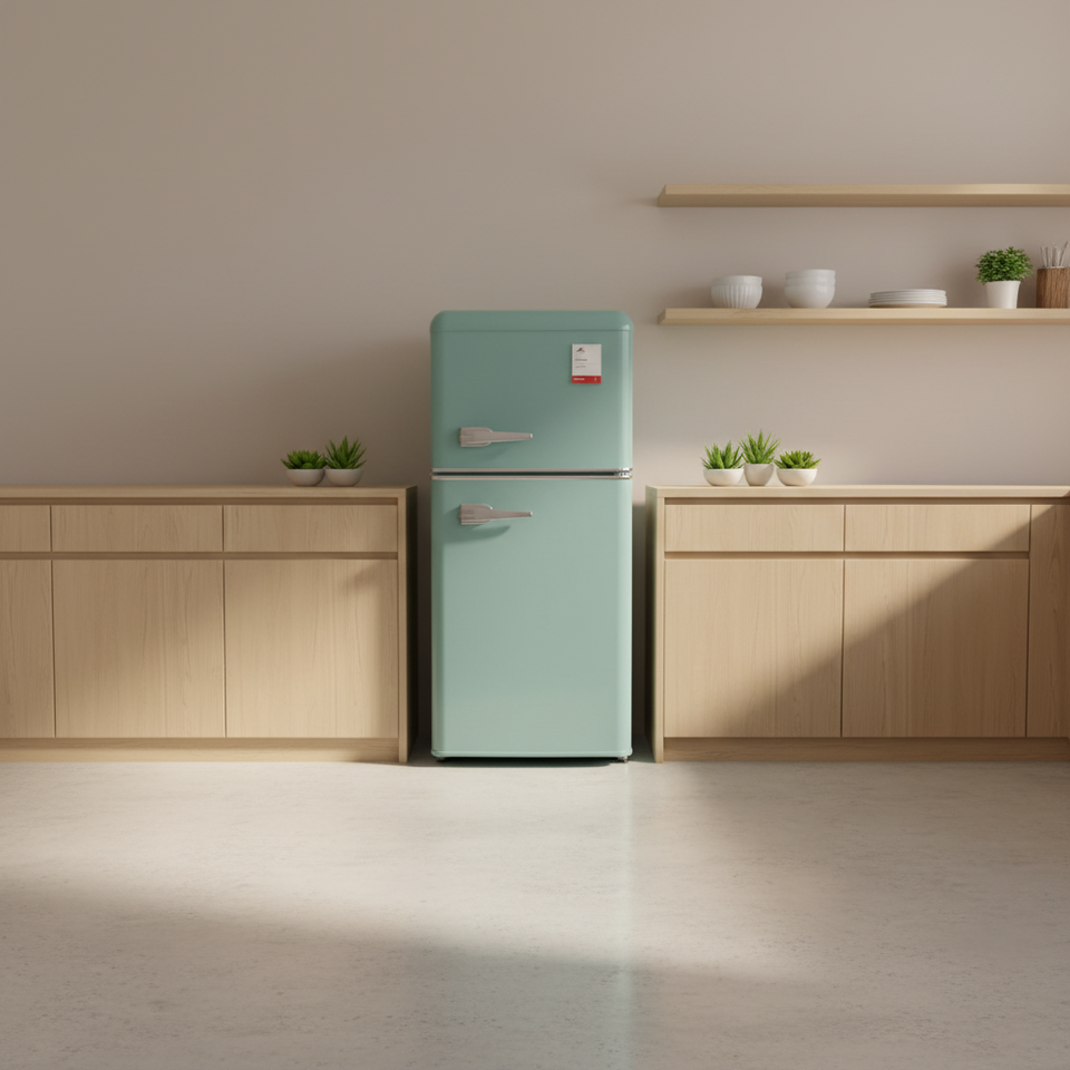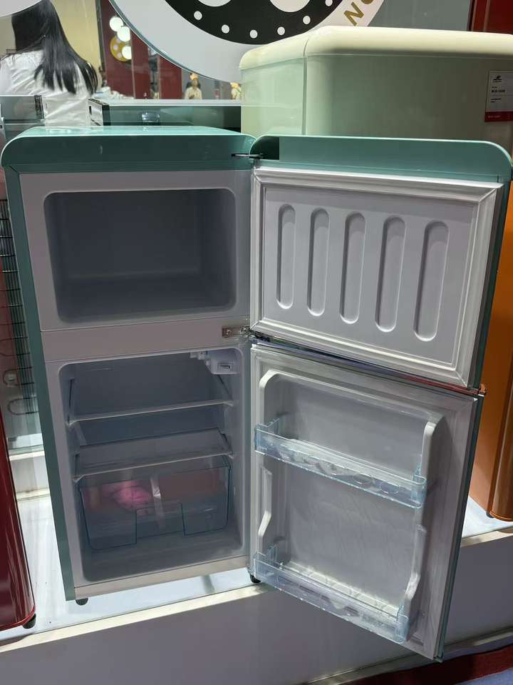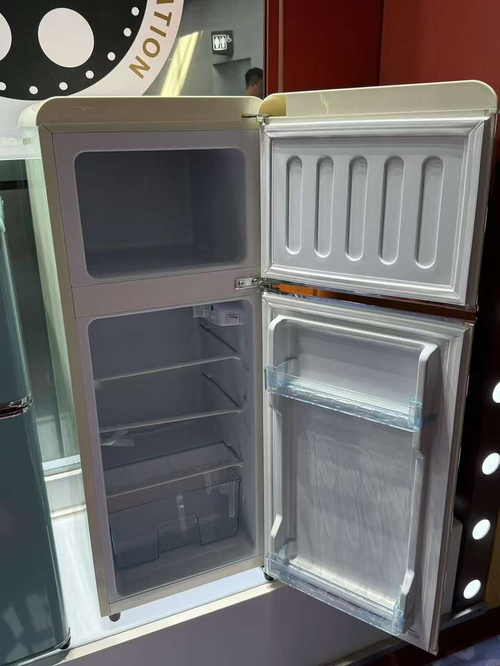 Réfrigérateur rétro pour usage commercial hôtelier OEM/ODM, dégivrage manuel, refroidissement direct, encastrable, en plastique, double porte