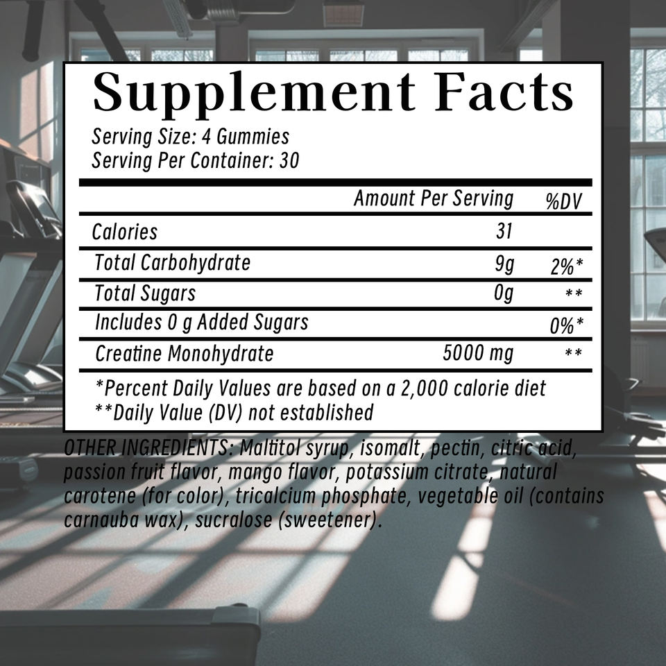 Gummies de créatine monohydrate OEM ODM avec glucides totaux – La créatine monohydrate aide à développer la masse musculaire maigre et à augmenter la force
