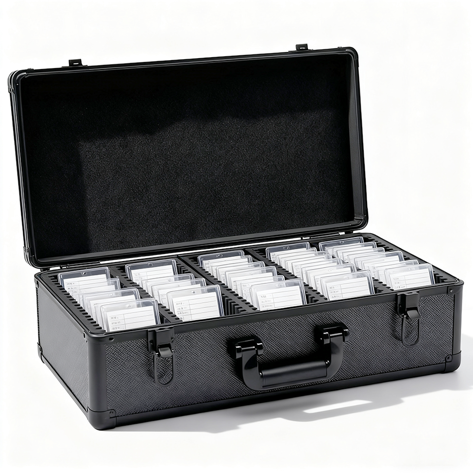 Boîtier de rangement en aluminium personnalisé OEM ODM, 5 compartiments, support de rail DIN 100 points pour le classement, le commerce, les cartes de sport, boîte à outils