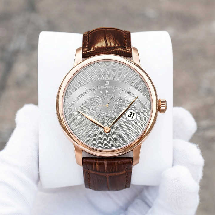 Montres automatiques rétrogrades de luxe personnalisées OEM ODM avec logo de marque, cadran guilloché, date et verre saphir