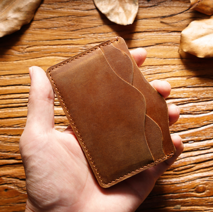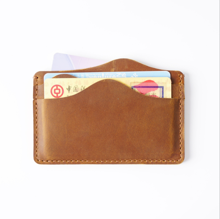 Porte-cartes en cuir pleine fleur véritable de vache, personnalisable OEM/ODM avec logo couleur, vente en gros d'usine, en cuir Crazy Horse