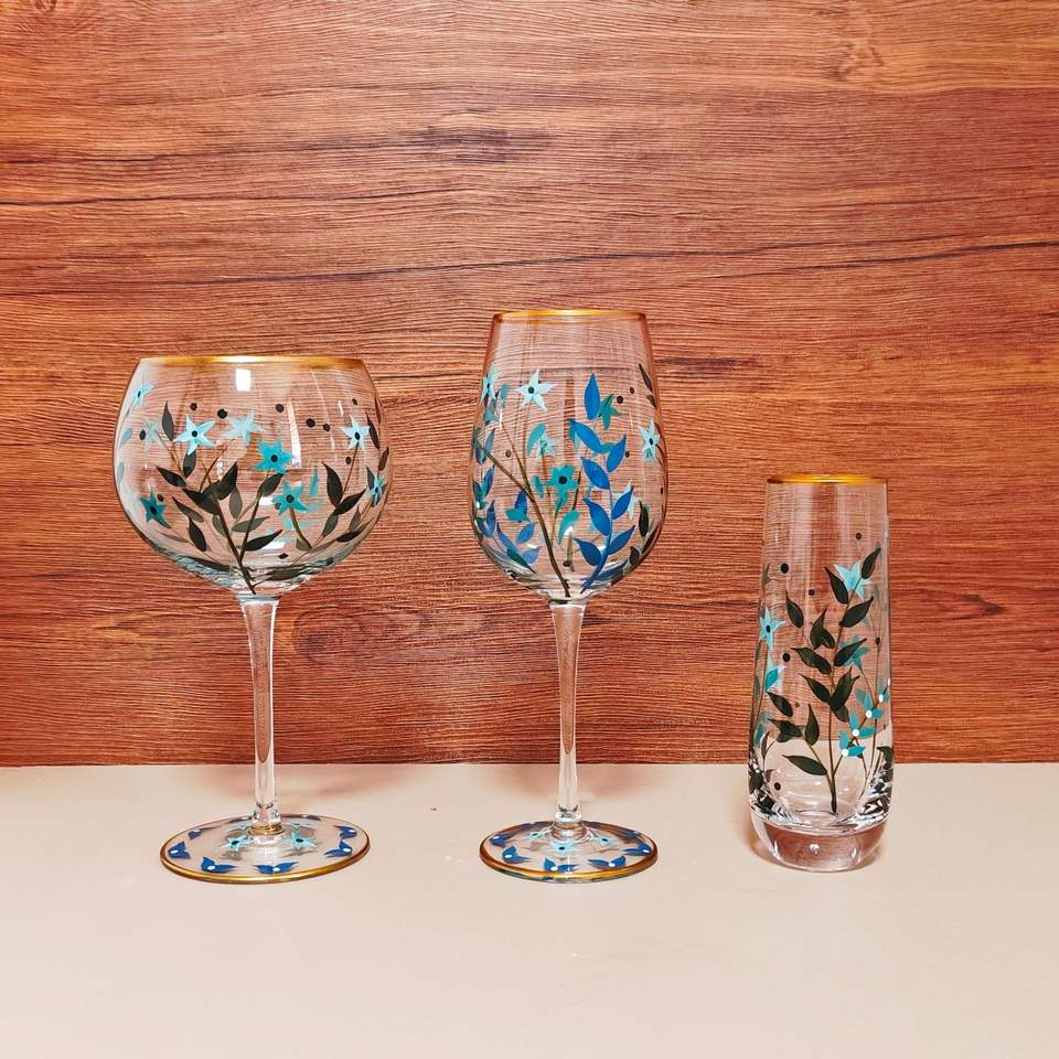 Verre à vin décoratif personnalisé OEM/ODM, motif floral peint à la main, gobelet en verre, bord doré, gobelets colorés pour la maison et les fêtes