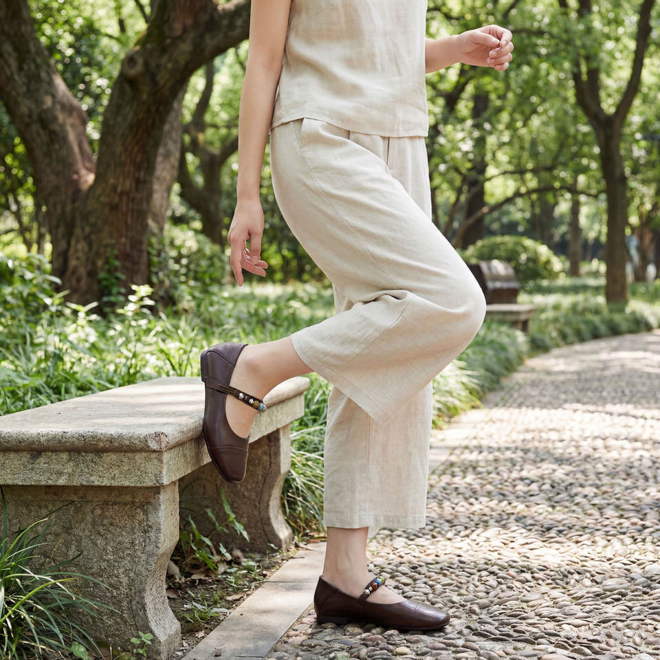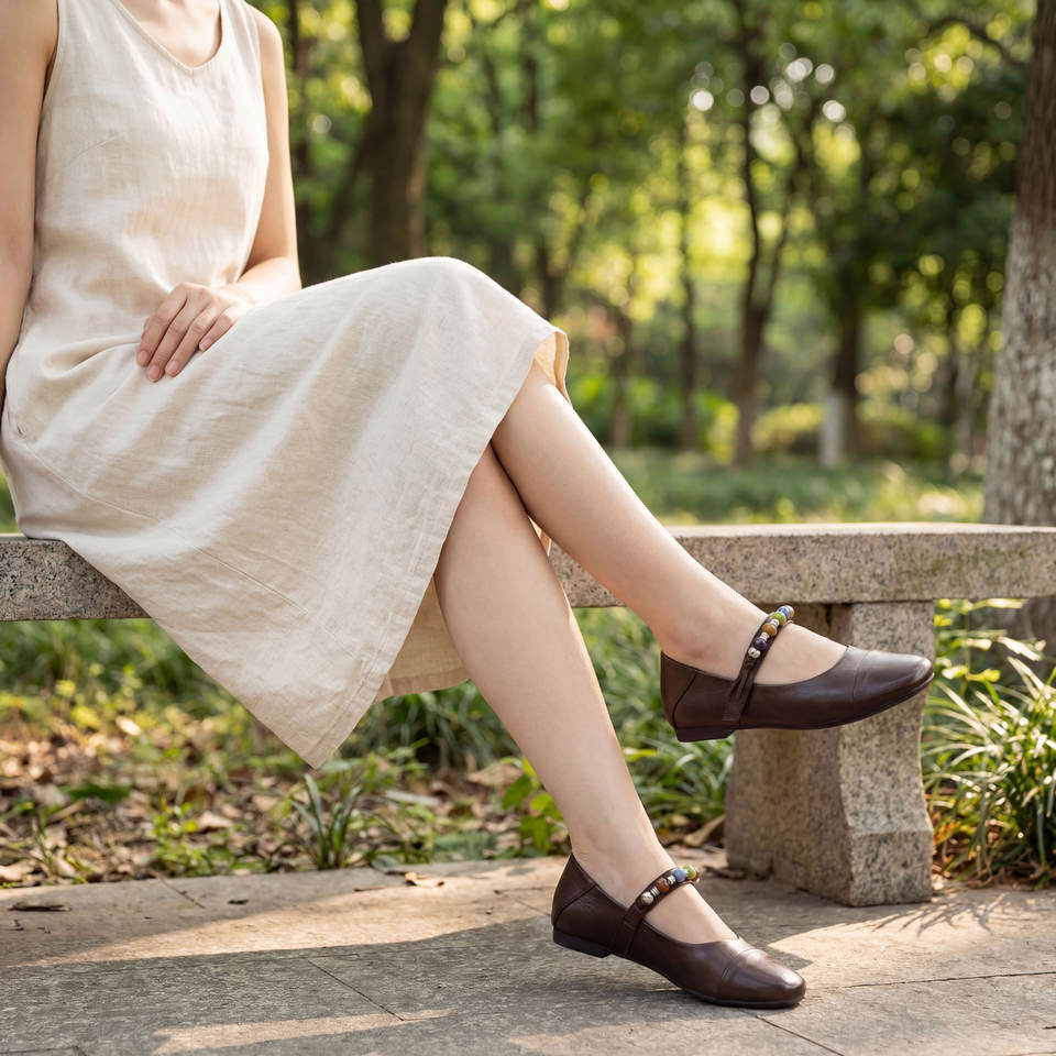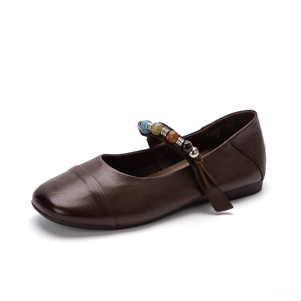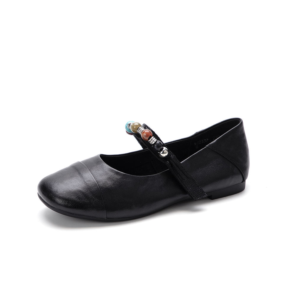 Chaussures plates Mary Jane en cuir souple personnalisées, de haute qualité, élégantes et confortables pour la marche, fabriquées par un fabricant de chaussures plates Mary Jane.