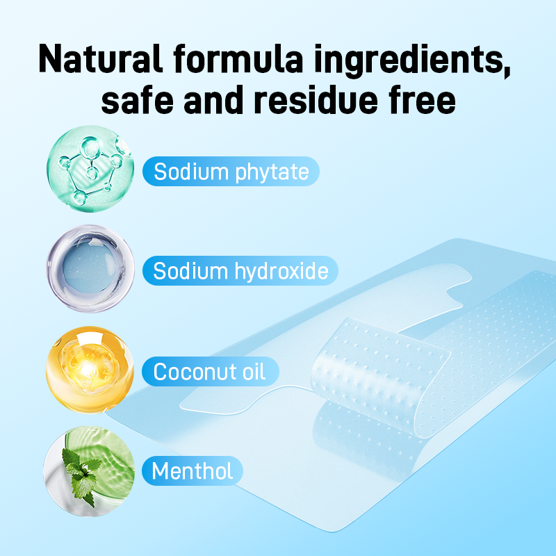 Phytate de sodium, Hydroxyde de sodium, Huile de coco, MentholMatériel